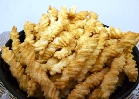 全国各地でつくられ愛されている「あられ」である。商品名も呼び方もバラバラで「横綱」、「横綱揚げ」「横綱あられ」、「ひねり」等々、様々であるが、どれも往々にして「綱」(太い綱に似ている形状から)とか「ひねり」(ひねったおかきであるから)とかを基本とした発展形である。この中でどれが元祖であるかは知る由もないし調べようとも思わないが、かなり前から日本各地に行きわたっていたものではないかと推測される。